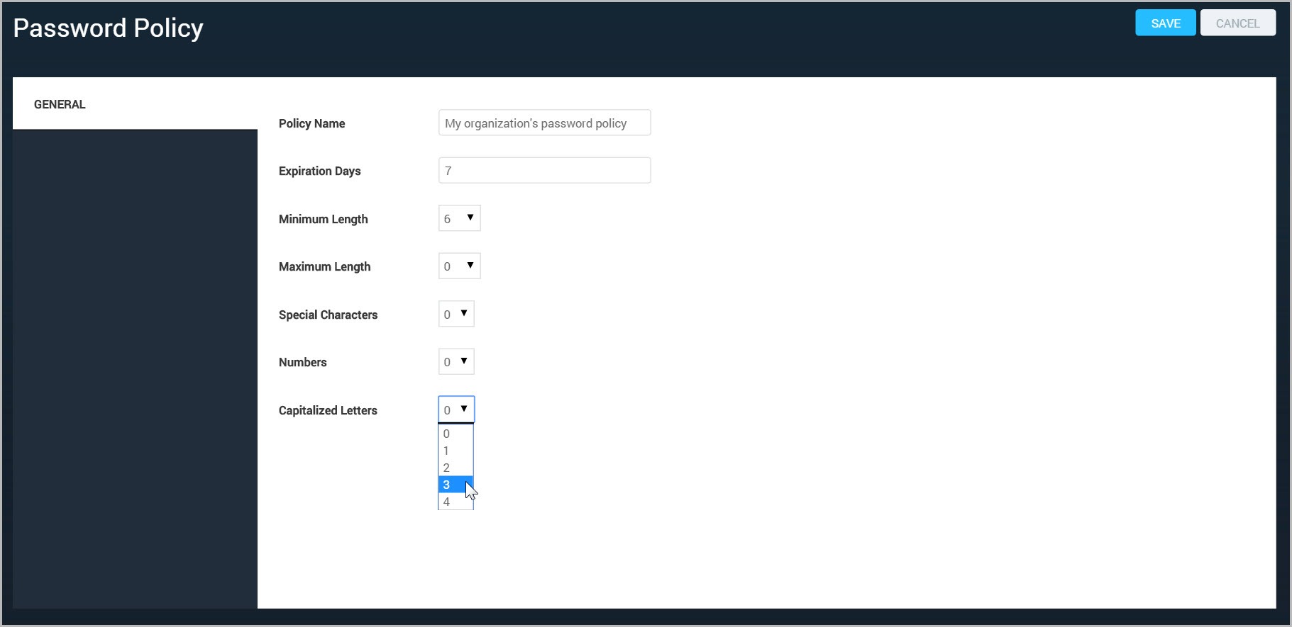 如果用户试图保存不符合所有要求的密码,则会出现错误消息。