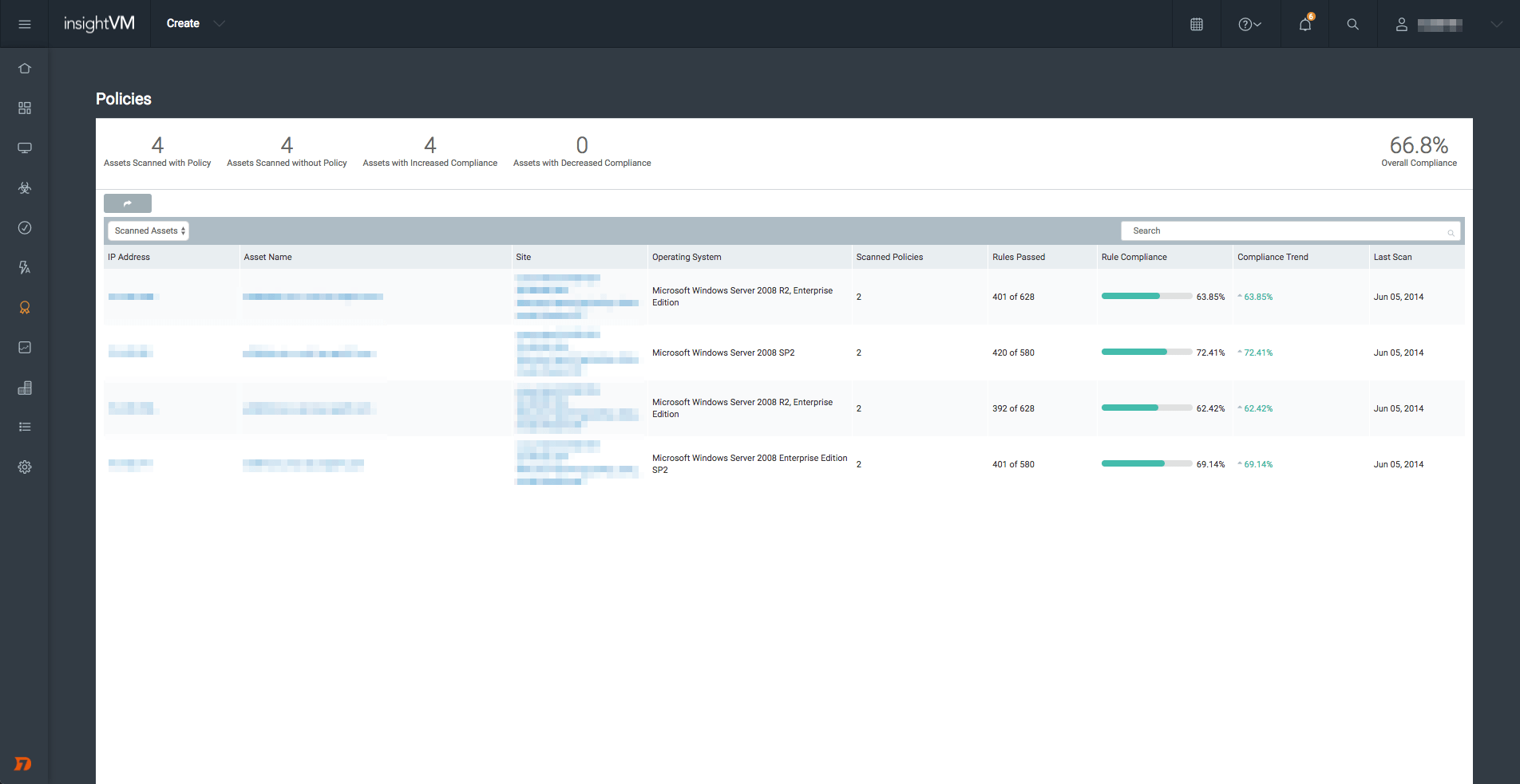 “扫描资产”表包含与“策略”表的类似信息和功能,而是从个人资产的角度来看。